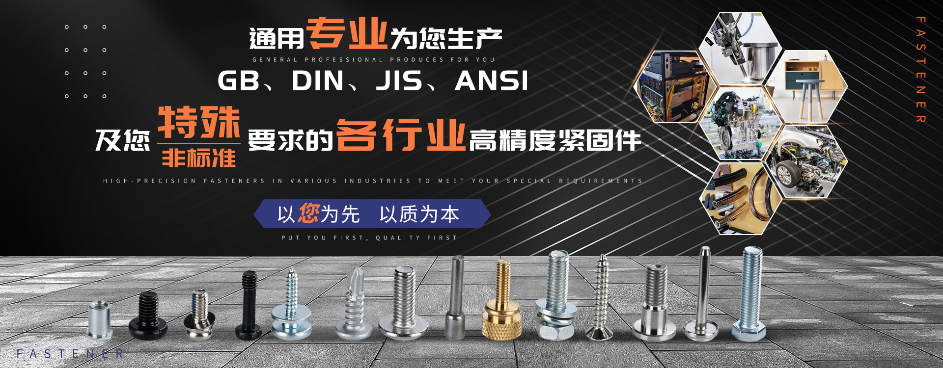 中山市通用螺絲制造有限公司成立于1987年,工廠坐落于廣東四小虎之一的中山市,北連廣州,毗鄰港澳。總占地面積14000m 2,足有兩個足球場。我司于1998年通過德國萊茵TUV ISO9002認證,于2002年通過TUV ISO9001:2000認證。2008年通過ISO 14000認證。我司主營自攻螺絲、組合螺絲、機械螺絲、防松螺絲等標準和非標準件,我司既可按客戶的要求提交所需的產品,也可以為客戶量身定做所需產品。我司擁有專業的產品檢測隊伍和投影分析儀、金相、硬度計(韋氏和洛氏)、扭矩力測試計等完善的檢測設備,為電子、電器、五金塑料、衛(wèi)浴、家具、機械、汽配等行業提供符合歐盟質量、環(huán)保要求的產品。2006年,我司自主開發(fā)的ERP管理系統,使我們的生產和服務效率得到了極大的提高。 經過三十多年地摸爬滾打,依靠眾多新老顧客的支持,通用螺絲逐漸成長為國內知名的緊固件供應商。了解更多 >>